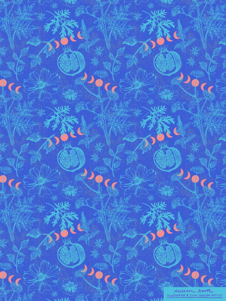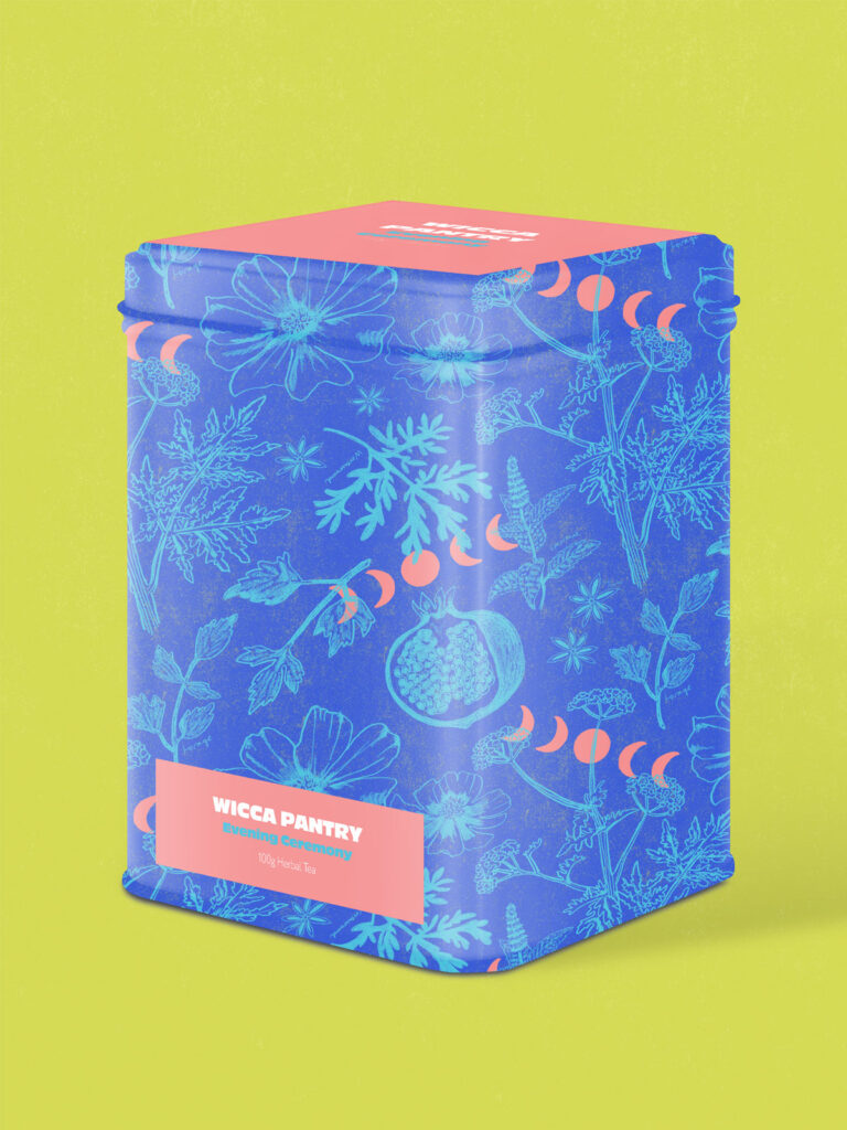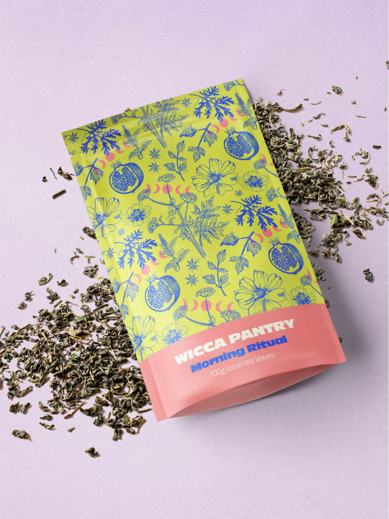 Wicca Pantry is food and drinks brand using natural, herbal ingredients integral to Wiccan practices. I illustrated the botanical ingredients you might find in a modern day witch’s pantry to create a seamless repeat pattern for herbal tea packaging.