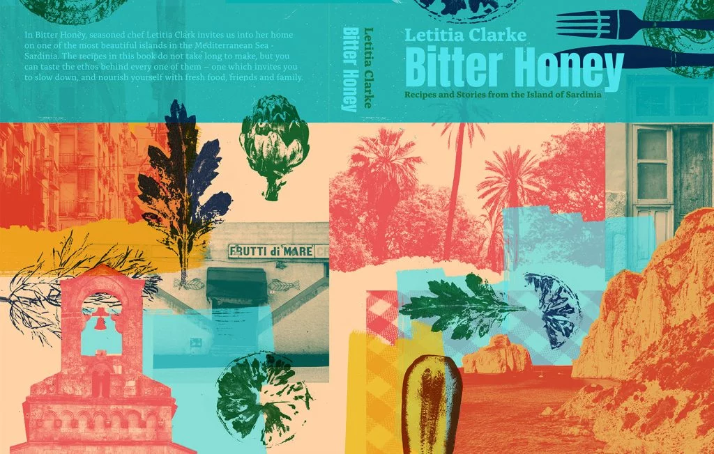 Full book cover illustration and design for ‘Bitter Honey: Recipes and Stories from the Island of Sardinia’ by Letitia Clarke published by Hardie Grant Books. I created this design using printed impressions of fresh ingredients picked straight from the the recipes. I used photo collage to combine these elements whilst building a picture of the island of Sardinia itself to create a travel recipe book feel.